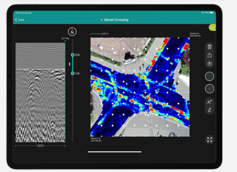 GS8000 Pro Multi-frequency GPR sensor, All-terrain cart, GNSS rover, push & pull cart, carbon fiber pole, power supply, cables, Proceq Live Wi-Fi module, AR marker, basic tools & accessories, documentation. Advanced Suite GS8000 Pro License (5 years included). This package provides software and hardware for locating and mapping buried objects using traditional A-scan and B-scan functionality and NEW Freepath software. iOS sold separately.